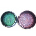 Ces bols Népalais sont d'un diamètre d'environs 17cm et d'un poids d'environ 550g à 580g. Les gravures sont unique extérieure comme intérieure, leurs couleurs peut être soit verte ou bleu turquoise.